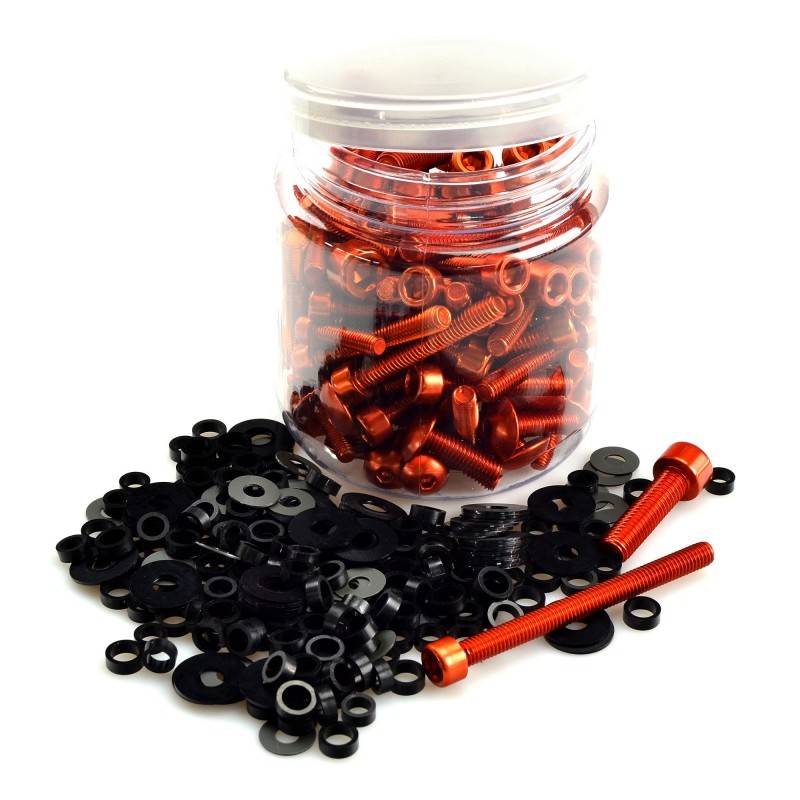Pote de parafusos misto para carenagem e motor. Ele contém os parafusos e anilhas das medidas mais usadas.
