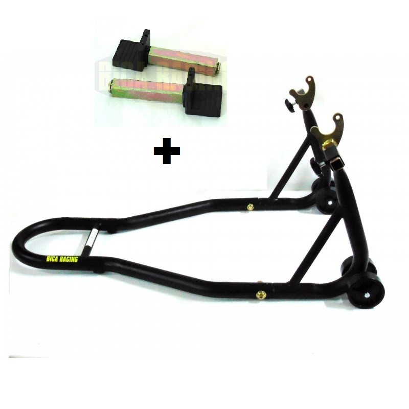 Totalmente ajustável em largura, adaptável em qualquer tipo de mota desde que tenha forma de apoiar, quadro ou atrávez dos suportes de cavalete